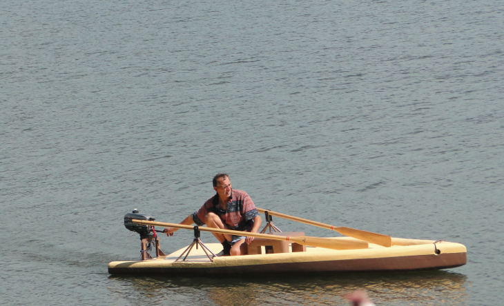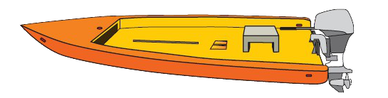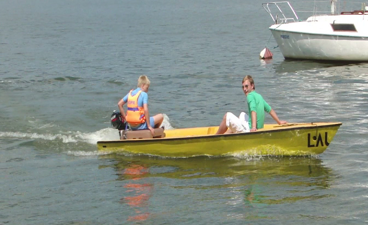 The floor of the boat is 20 cm thick in the front part and descends gently towards the stern,