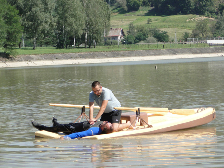 wciągnięcia do łodzi osoby potrzebującej pomocy. Szeroki i płaski kokpit umożliwia swobodne ułożenie tej osoby